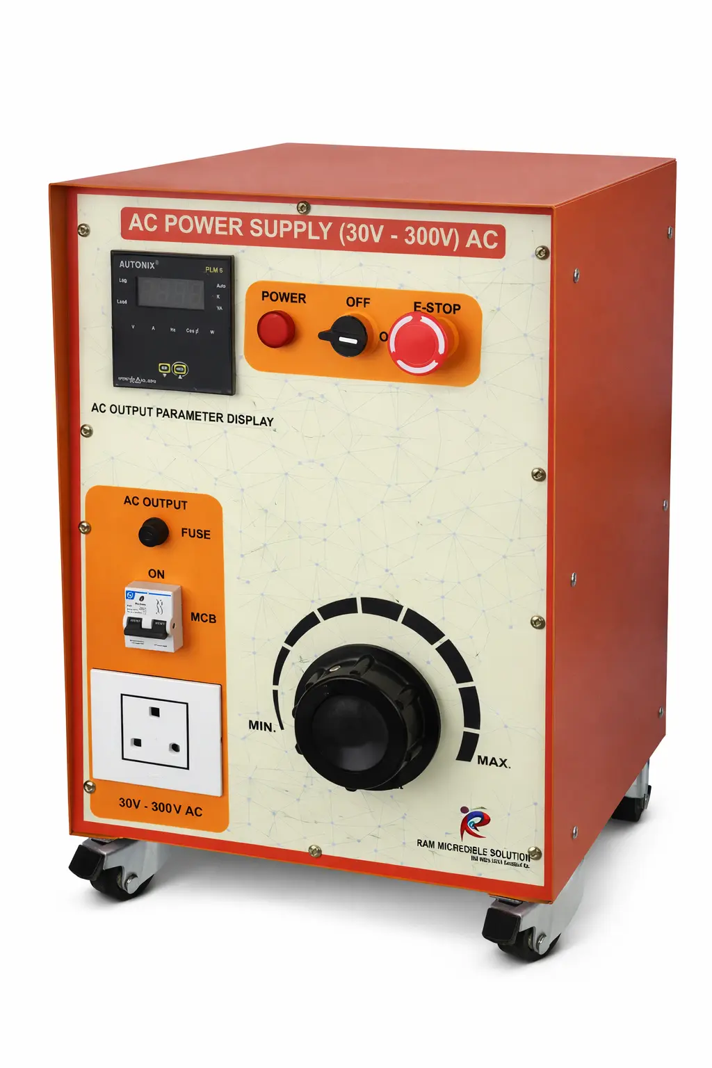 Supplies 0-600v AC of current, enough for most experiments, It is most useful equipments and effective on any electrical lab or Industries environment, A circuit breaker system which protect to guard against harmful fluctuations and eliminate fuse changes