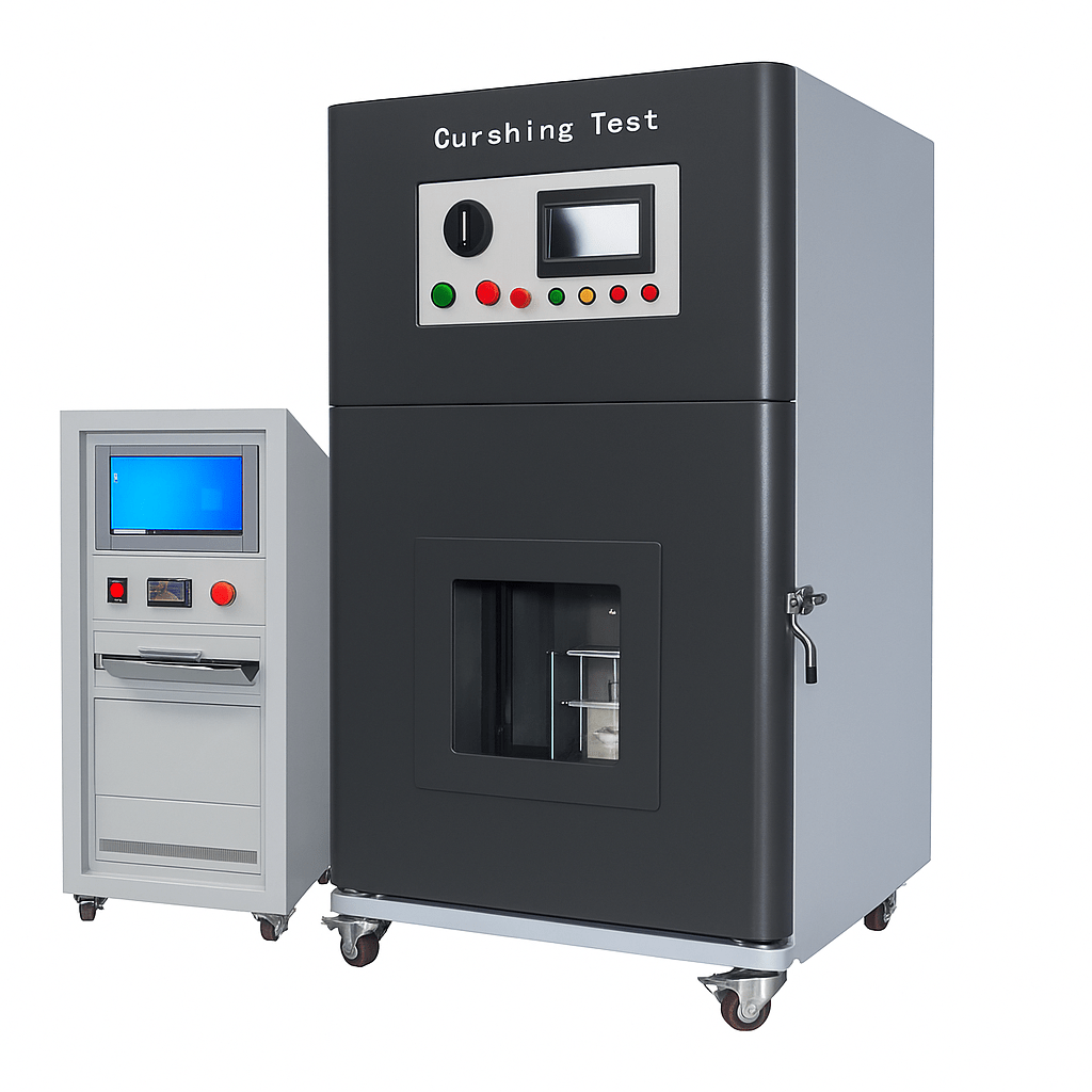 Crushing Test Equipment is a specialized mechanical abuse testing system designed to evaluate the safety, structural integrity, and failure behavior of batteries, cells, modules, and other components when subjected to controlled compressive force. The equipment simulates extreme real-world conditions such as external impact, deformation, mechanical stress during accidents, misuse, or installation faults.