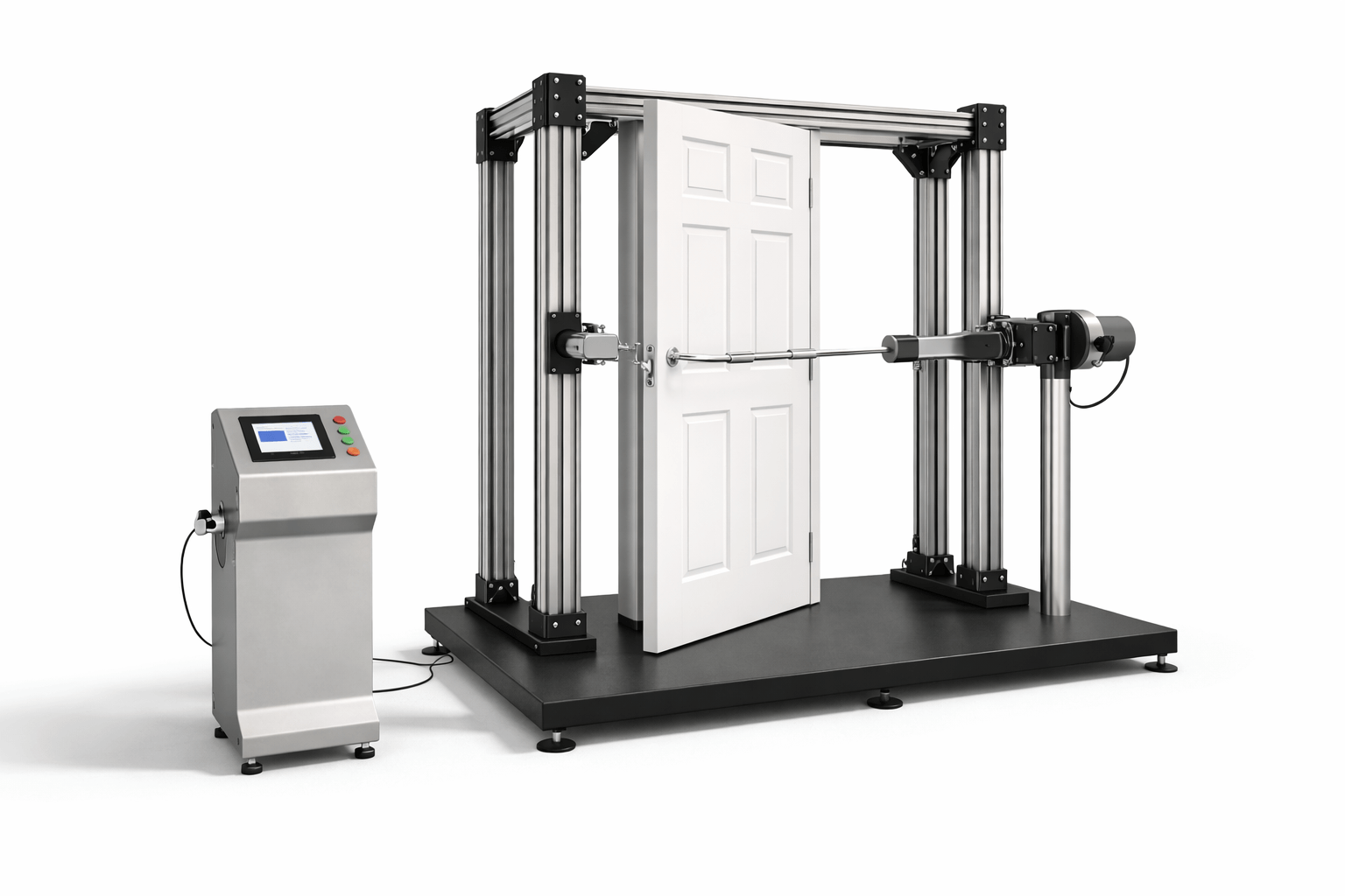 The Door Impact / Pull Resistance Rig is designed to evaluate the mechanical strength, durability, and safety of doors, door frames, hinges, and locking systems.