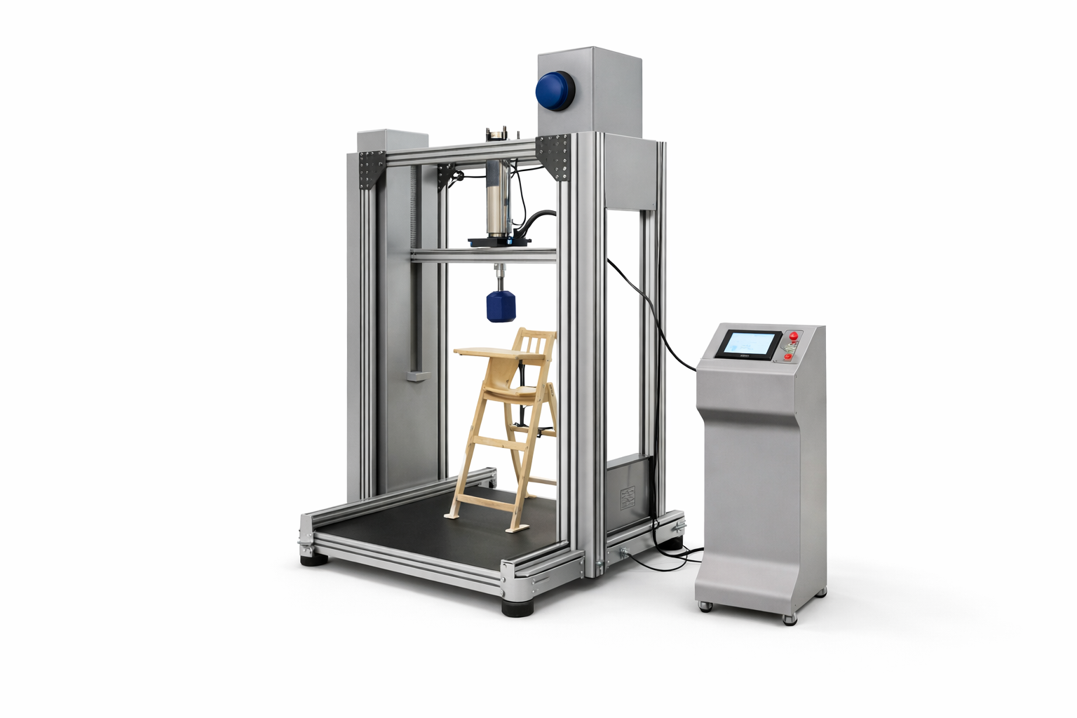 It is used for testing the mechanical properties of a high chair, including static load tests on the seat, tray, backrest, and footrest, as well as stability tests. It can also be used for testing the impact strength of the backrest and handrail.