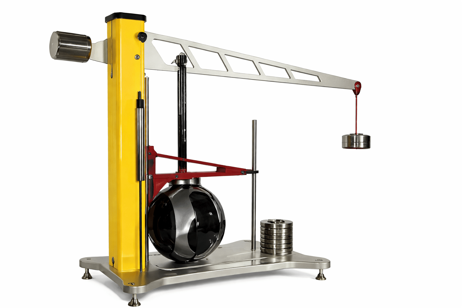 The equipment shown in the image appears to be a helmet rigidity tester, used to determine a helmet’s ability to withstand deformation from external forces