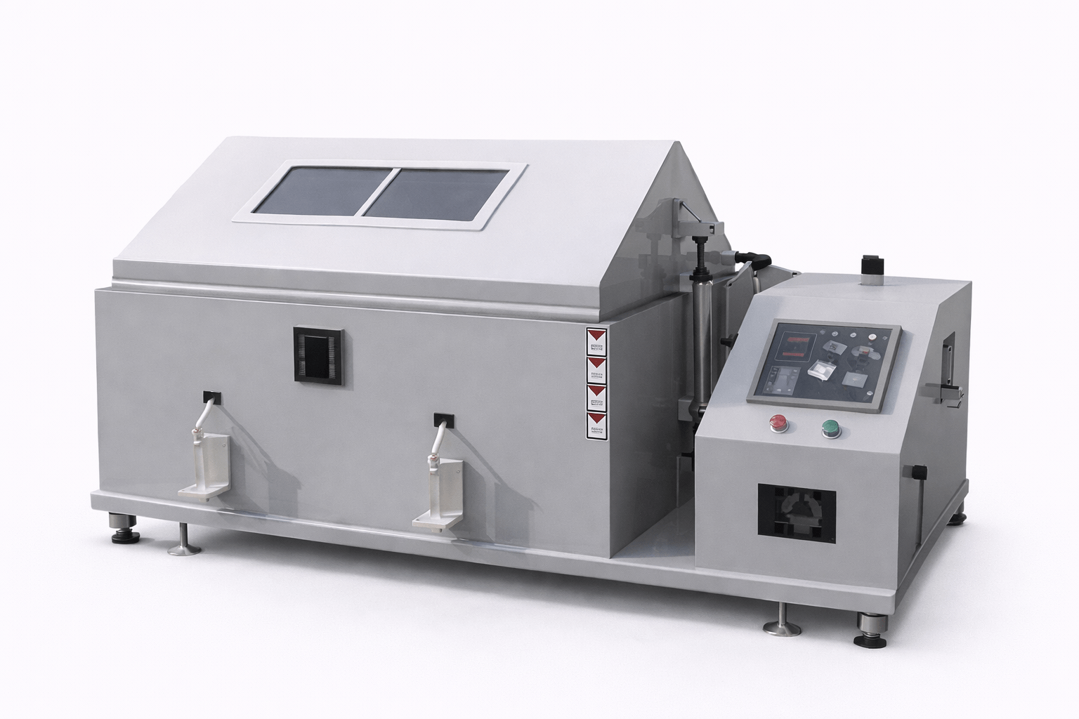 Salt Spray Tester is a corrosion testing chamber used to evaluate the resistance of metallic and coated materials to corrosive environments. It generates a controlled salt mist (NaCl solution) inside a sealed chamber at specified temperature and pressure conditions to simulate accelerated corrosion as per international standards. The system features precise temperature control, uniform fog distribution, programmable test cycles, and corrosion-resistant construction for reliable and repeatable test results.