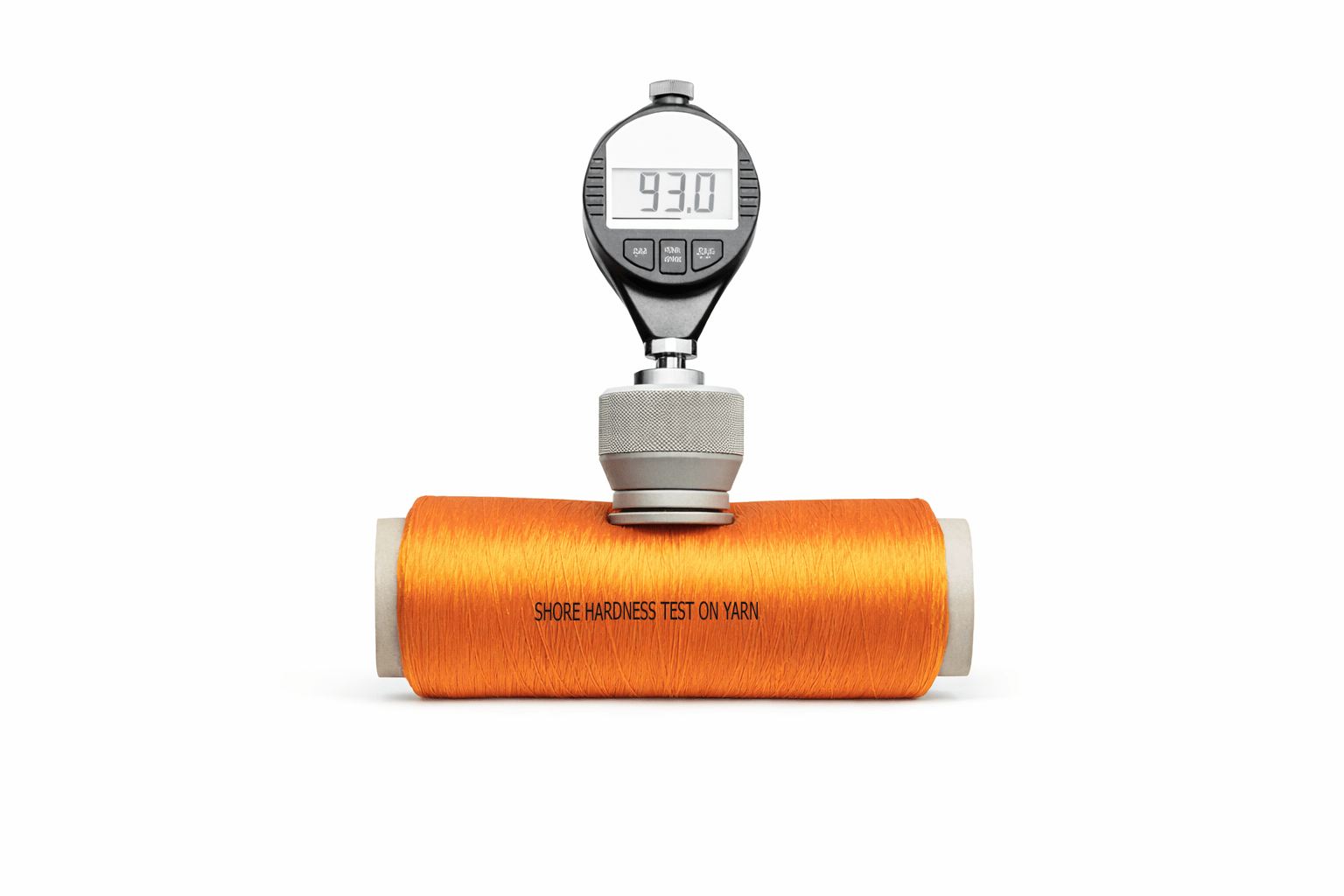A Yarn Package Shore Hardness Tester (also known as a Durometer). This device is used to measure the hardness of yarn packages, such as cones and beams, which is a critical parameter in spinning mills.
